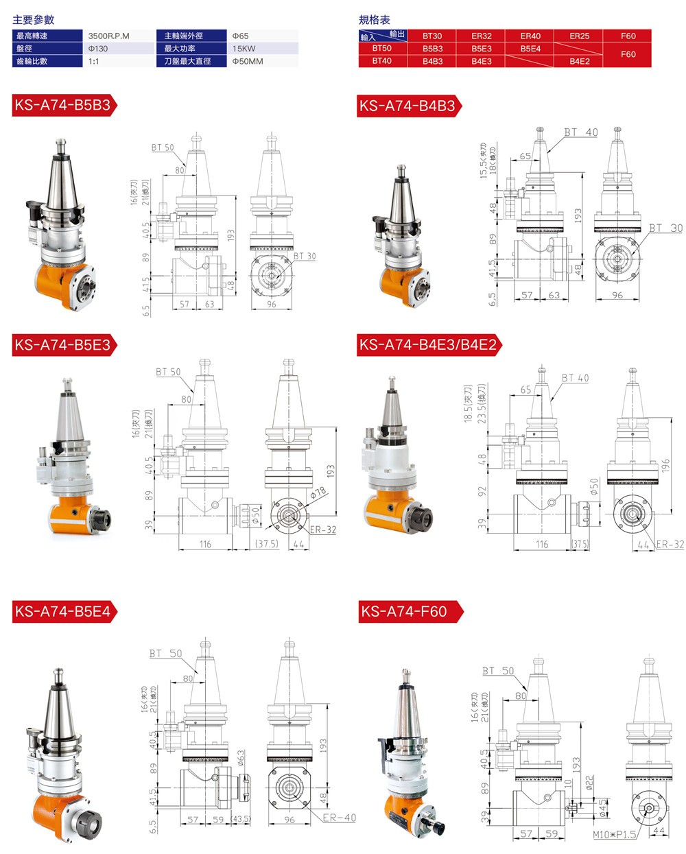 KS-A73 小型延伸角銑頭