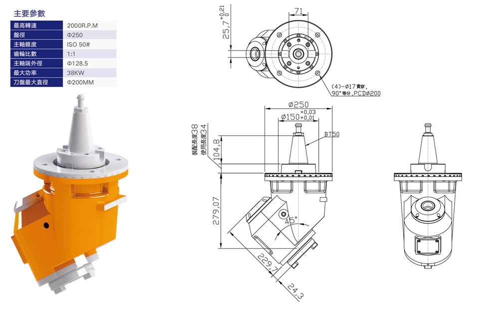 KS-A45固定45度銑頭